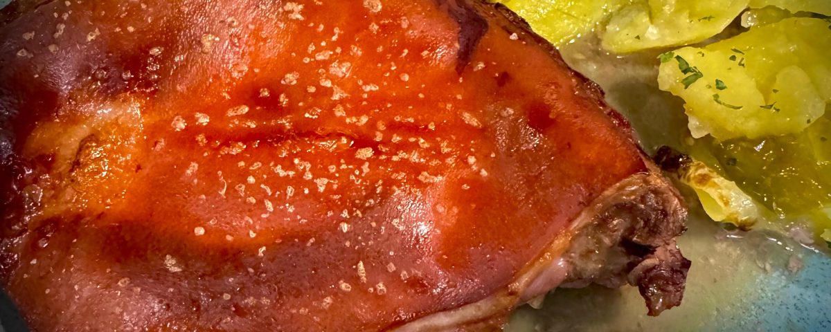 Cochinillo al estilo segoviano, cocinado al barro y asado lentamente para lograr una piel crujiente y una carne tierna y jugosa.
