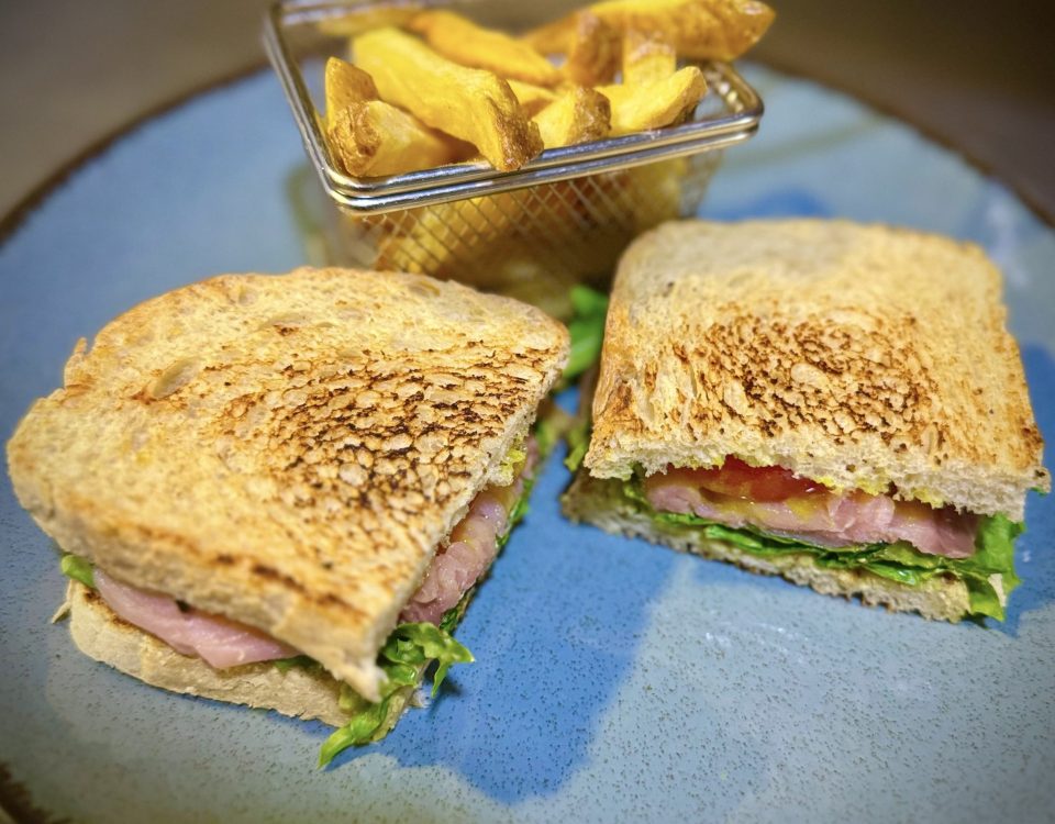 08/08/2025Tosta Nórdica de SalmónTosta de pan crujiente con salmón ahumado, guacamole, tomate fresco y lechuga viva, aderezada con salsa de mostaza y miel. Acompañada de patatas fritas.
