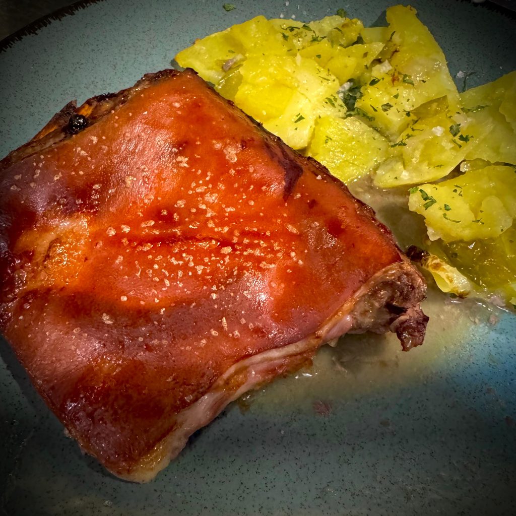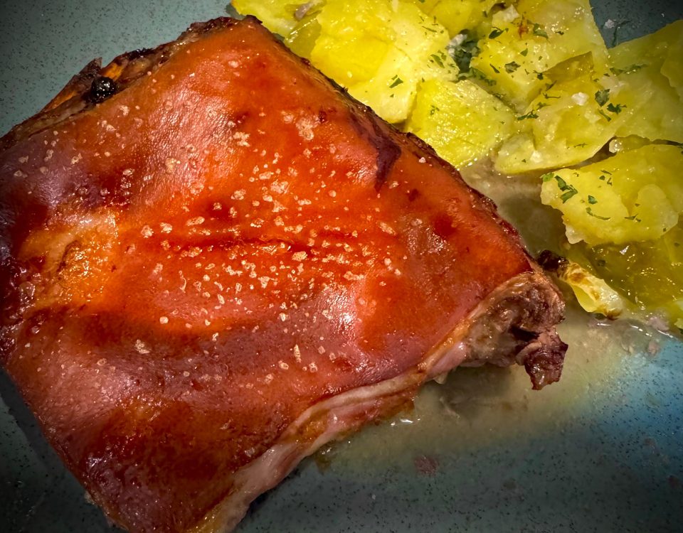 08/08/2025Cochinillo al Barro CrujienteCochinillo al estilo segoviano, cocinado al barro y asado lentamente para lograr una piel crujiente y una carne tierna y jugosa.