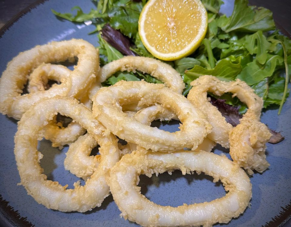 06/08/2025Calamares a la RomanaCalamares a la romana, dorados y crujientes, servidos con ensalada de guarnición.