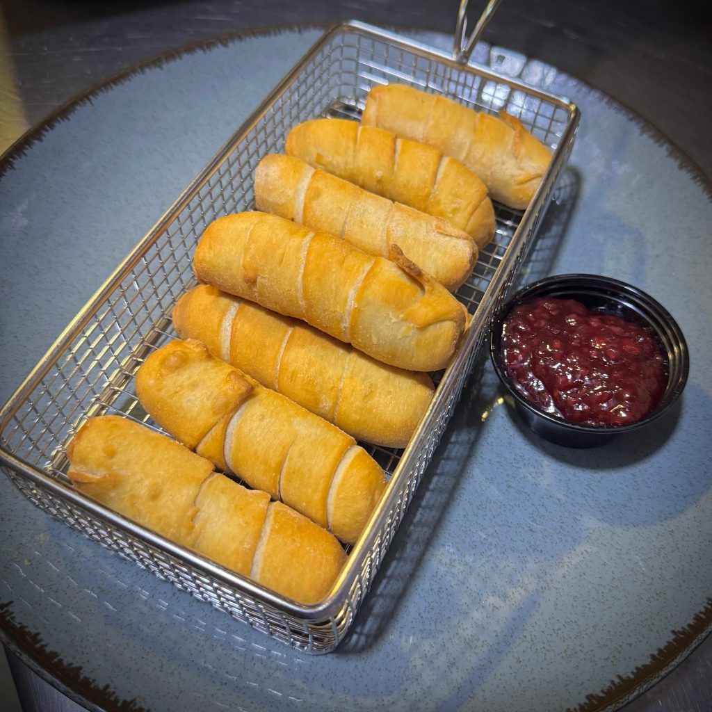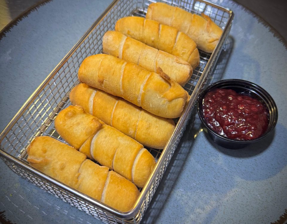 Lingotes crujientes de masa rellenos de queso fundido, dorados al estilo del Caribe y servidos con mermelada de frambuesa.¡El botín favorito de cualquier bucanero goloso!